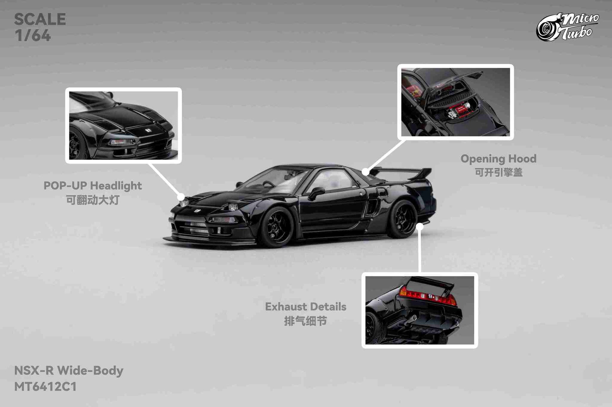 (Pre-Order) MicroTurbo - 1/64 Custom NSX Wide Body - Gloss Black